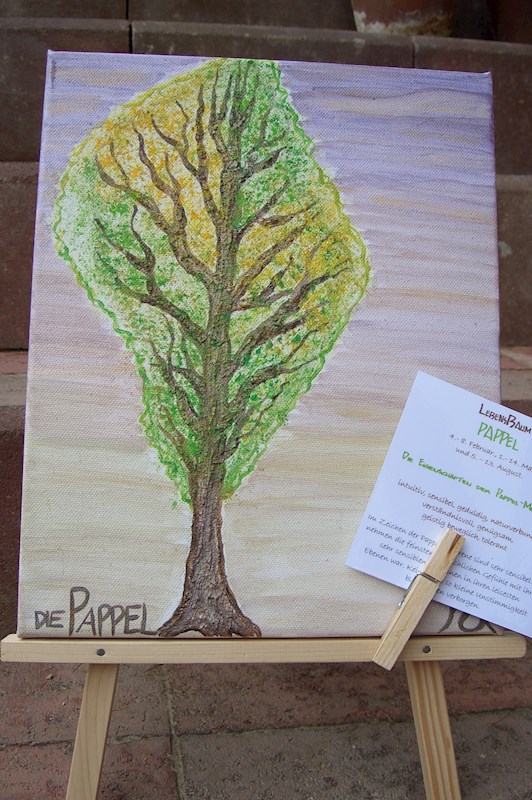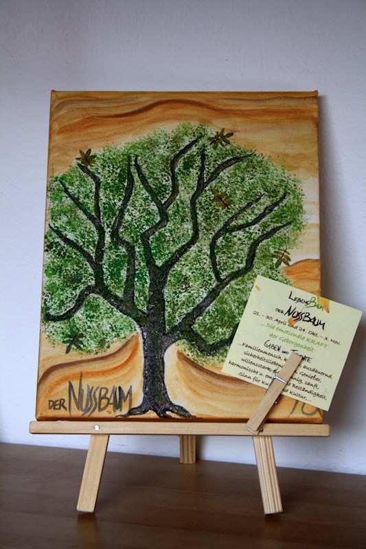 LebensBaumBilder LebensBaumBild gemalt individuell ab € 120,00 PartnerschaftsBaumBild gemalt individuelle ab € 150,00 LebensBaumBilder gemalt individuelle Wunschformate Bildstaffelei aus Holzfür Bildformat 24x30 € 20,00 LebensBaumBild - "Der Ahorn" gemalt11. – 20. April und 14. – 23. Oktober € 120,00 LebensBaumBild - "Der Haselbaum" gemalt22. – 31. März und 24. September – 3. Oktober € 120,00 LebensBaumBild - "Die Eberesche" gemalt1. – 10. April und 4. – 13. Oktober € 120,00 LebensBaumBild - "Die Eiche" gemalt21. März – Frühlings-Tagundnachtgleiche € 120,00 LebensBaumBild - "Die Kastanie" gemalt 15. – 24. Mai und 12. – 21. November € 120,00 LebensBaumBild "Der Apfelbaum" gemalt25. Juni – 4. Juli und 23. Dezember – 1. Januar € 120,00 LebensBaumBild "Der Feigenbaum" gemalt14. – 23. Juni und 12. – 21. Dezember € 120,00 LebensBaumBild "Der Nussbaum" gemalt21. – 30. April und 24. Oktober – 2. November € 120,00 LebensBaumBild "Der Olivenbaum" gemalt23. September, Herbst-Tagundnachtgleiche € 90,00 LebensBaumBild "Die Birke" gemalt24. Juni, Johanni - Fest der Sommersonnenwende € 90,00 LebensBaumBild "Die Buche" gemalt22. Dezember, Wintersonnenwende € 90,00 LebensBaumBild "Die Eibe" gemalt1. – 14. Mai und 3. – 11. November € 90,00 LebensBaumBild "Die Esche" gemalt25. Mai – 3. Juni und 22. November – 1. Dezember € 90,00 LebensBaumBild "Die Hainbuche" gemalt4. – 13. Juni und 2. – 11. Dezember € 90,00 LebensBaumBild "Die Kiefer" gemalt19. – 29. Februar und 24. August – 2. September € 90,00 LebensBaumBild "Die Linde" gemalt 11. – 20. März und 13. – 22. September € 90,00 LebensBaumBild "Die Pappel" gemalt4. – 8. Februar und 5. – 13. August € 90,00 LebensBaumBild "Die Tanne" gemalt2. – 11. Januar und 5. – 14. Juli € 90,00 LebensBaumBild "Die Ulme" gemalt15. – 25. Juli und 12. – 24. Januar € 90,00 LebensBaumBild "Die Weide" gemalt1. – 10. März und 3. – 12. September € 90,00 LebensBaumBild "Die Zeder" gemalt9. – 18. Februar und 14. – 23. August € 90,00 LebensBaumBild "Die Zypresse" gemalt25. Januar – 3. Februar und 26. Juli – 4. August € 90,00