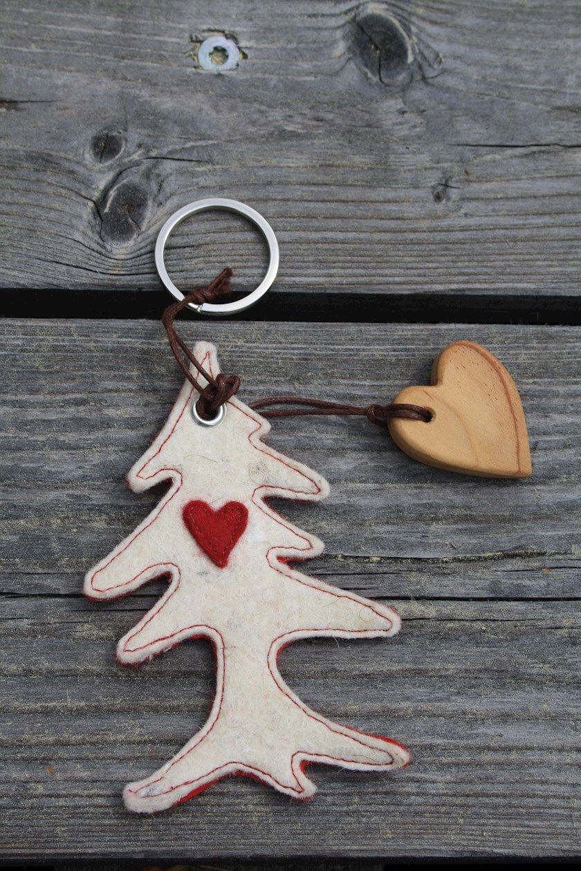 Diese liebevollen und von handangefertigten Schlüsselanhänger, bestehen aus der Kombination von einem farbenfrohen Filzbäumchen aus Schafwolle und einem Holzherzen ihres persönlichen LebensBaums. Mit diesem besonderen Schlüsselanhänger, tragen sie einen Teil ihres LebensBaums immer bei sich. Er schenkt ihnen Freude & Kraft und erinnerte sie im Laufe eines Tages immer wieder an ihre individuellen Gaben & Talente und das Potential, welches sie in sich tragen und gelebt werden möchte.