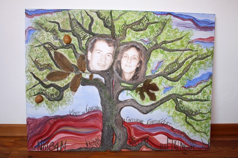 Auf Wunsch kann in der Baumkrone auch ein Foto des Paares mit integriert werden. Dies dient dazu, sich beim Betrachten ihres Bildes der tiefen Verbindung mit ihrem LebensBaum und ihrem Partner immer wieder bewusst zu werden und lässt sie als Einheit, fest verwurzelt und kraftvoll ihren gemeinsamen Lebensweg gehen.